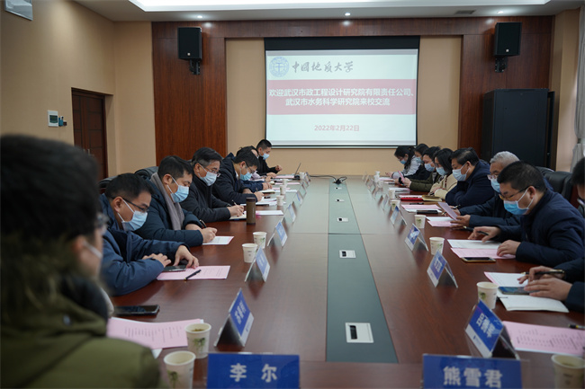2022年2月22日,公司副總經(jīng)理、總工程師周俊,副總經(jīng)理饒世雄攜公司水環(huán)境研究院博士團(tuán)隊(duì)前往中國地質(zhì)大學(xué)(武漢),就污水處理與資源化、水環(huán)境治理項(xiàng)目與中國地質(zhì)大學(xué)(武漢)、武漢市水務(wù)科學(xué)研究院的院士、專家團(tuán)隊(duì)開展合作交流。中國地質(zhì)大學(xué)(武漢)校長(zhǎng)王焰新院士,武漢市水務(wù)科學(xué)研究院院長(zhǎng)葉輝、副院長(zhǎng)李敏,及三方相關(guān)領(lǐng)導(dǎo)和技術(shù)專家出席會(huì)議。中國地質(zhì)大學(xué)(武漢)校友與社會(huì)合作處處長(zhǎng)陳華榮主持會(huì)議。